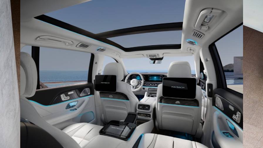 It extends the portfolio of the Mercedes-Maybach brand by combining the body design and technical basis of the GLS with the luxury of a top-class saloon car. Its spacious interior with the highest-grade materials and extremely effective noise insulation creates a stylish, cocoon-like feel-good atmosphere. From their pleasantly elevated seating position, thanks to electrically operated roller sun blinds on the two rear side windows, the passengers can decide for themselves how much of their surroundings they want to see. The AIRMATIC suspension included as standard or the optional, fully-active suspension with E-ACTIVE BODY CONTROL effectively keep the road bumps at bay