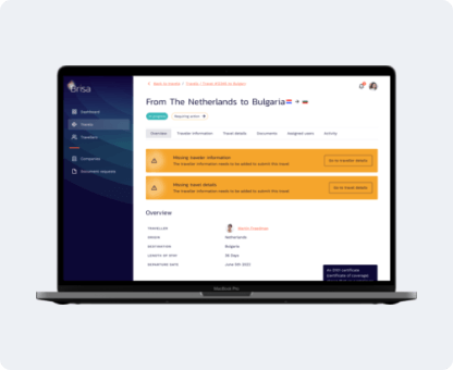 With Brisa, applying for an A1 Certificate or Certificate of Coverage (CoC) is very easy and effective. No matter if it is a business trip or a work-from-anywhere request, the necessary certificates are initiated automatically upon employee’s trip request, saving you a lot of time and resources.